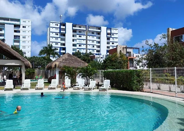 Depa En Cancun Con Alberca Apartment is situated 6 minutes' walk from La Gran Plaza and 20 km from Cancun airport. A mere 1.8 km from Andres Quintana Roo Olympic Stadium, the apartment welcomes guests with a picnic area and a garden.